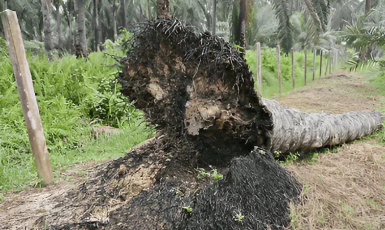 • Pohon mudah tumbang: Tanaman perdaunan dan batang melemah, sehingga mudah tumbang, apalagi jika terjadi hujan deras atau angin kencang.