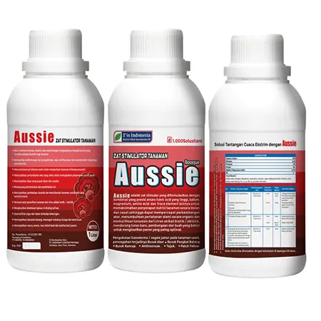 • Aussie adalah Zat Stimulan yang diformulasikan dengan kombinasi yang presisi antara fulvic acid yang tinggi, kalium, magnesium, amino acid dan trace element lainnya untuk memaksimalkan penyerapan nutrisi tanaman secara instan dan cepat sehingga dapat mempercepat perkembangan akar, menumbuhkan pertahanan alami secara organic dan memulihkan tanaman dari stress akibat biotik/abiotic, mendorong tunas baru, pembungaan dan buah yang bobot untuk menghasilkan panen yang optimal.